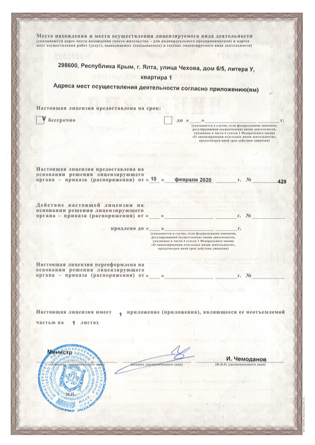 • медицинская лицензия